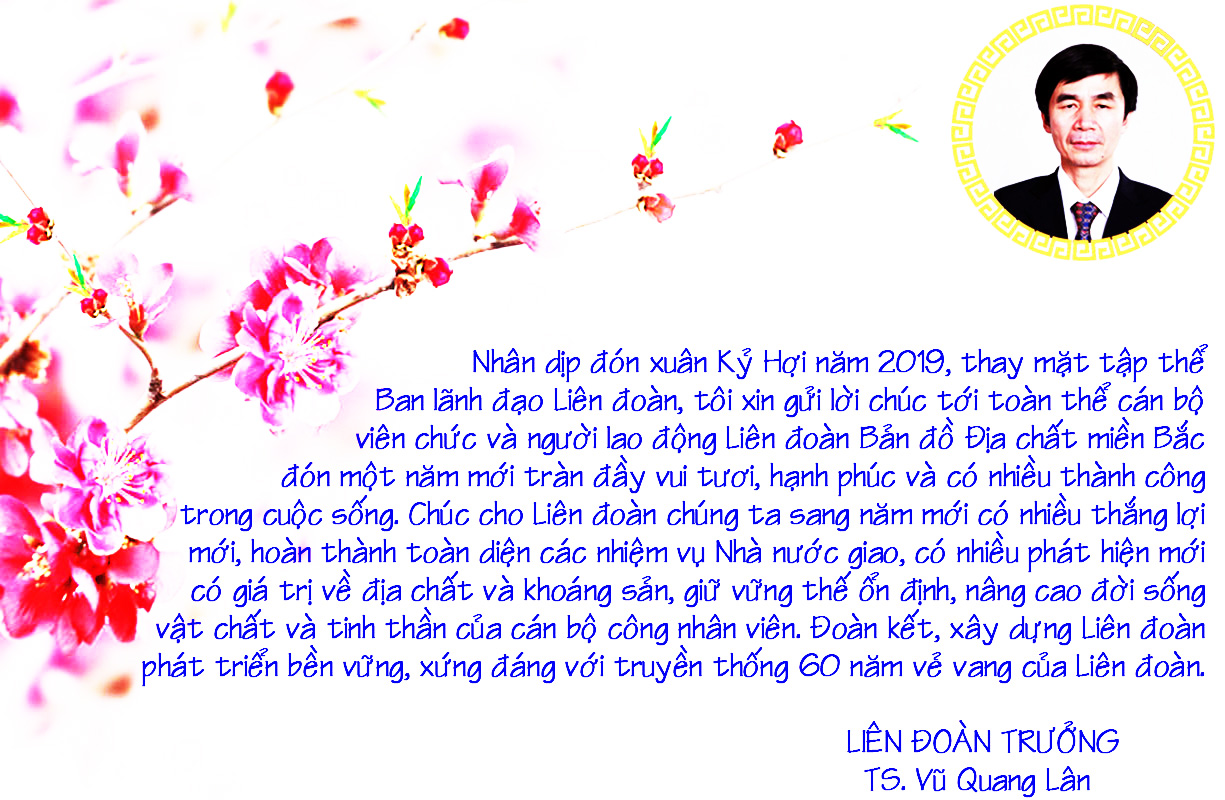 Xem thêm: KHÁI QUÁT LỊCH SỬ XÂY DỰNG, PHÁT TRIỂN VÀ NHỮNG THÀNH TÍCH NỔI BẬT CỦA LIÊN ĐOÀN BẢN ĐỒ ĐỊA CHẤT...Trong không khí tưng bừng đón chào Xuân Kỷ Hợi 2019; chào mừng các ngày Lễ lớn của đất nước và kỷ niệm 60 năm thành lập Liên đoàn. Trong không khí vui tươi phấn khởi của toàn thể CBCNV Liên đoàn Bản đồ Địa chất miền Bắc đã có tinh thần đoàn kết, lao động nhiệt tình, hoàn thành xuất sắc các nhiệm vụ được giao năm 2018.